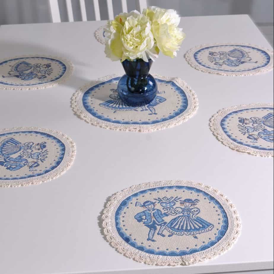 Podczas oglądania produktów z tej kolekcji – serwetki Niebiescy tancerze przywołują uczucie przytulności, prostoty i ciepła, jakby przenosiły do domów z dzieciństwa. Naturalne, stonowane, inspirowane naturą kolory oraz sprawdzone, tradycyjne wzory, utkane na obrusach, bieżnikach, serwetkach czy fartuszkach, doskonale pasują do codziennych, praktycznych wnętrz i pięknie zdobią przestrzenie wiejskich domów.