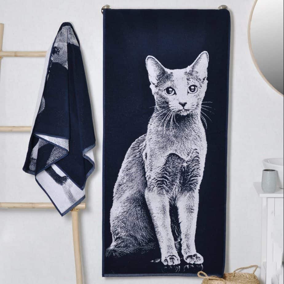 Bawełniany ręcznik kąpielowy Kot rosyjski niebieski