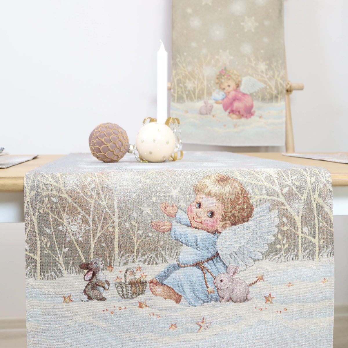 Pielęgnacja: bieżniki zalecamy czyścić chemicznie na sucho. W pralce automatycznej tkaninę można prać w temperaturze nie wyższej niż 30 °C, bez użycia wybielaczy i środków zawierających chlor. Tkaninę gobelinową należy suszyć naturalnie, ważne, by jej nie przesuszyć; nie wolno suszyć w suszarce bębnowej. Zalecamy prasować w temperaturze nie wyższej niż 110 °C.