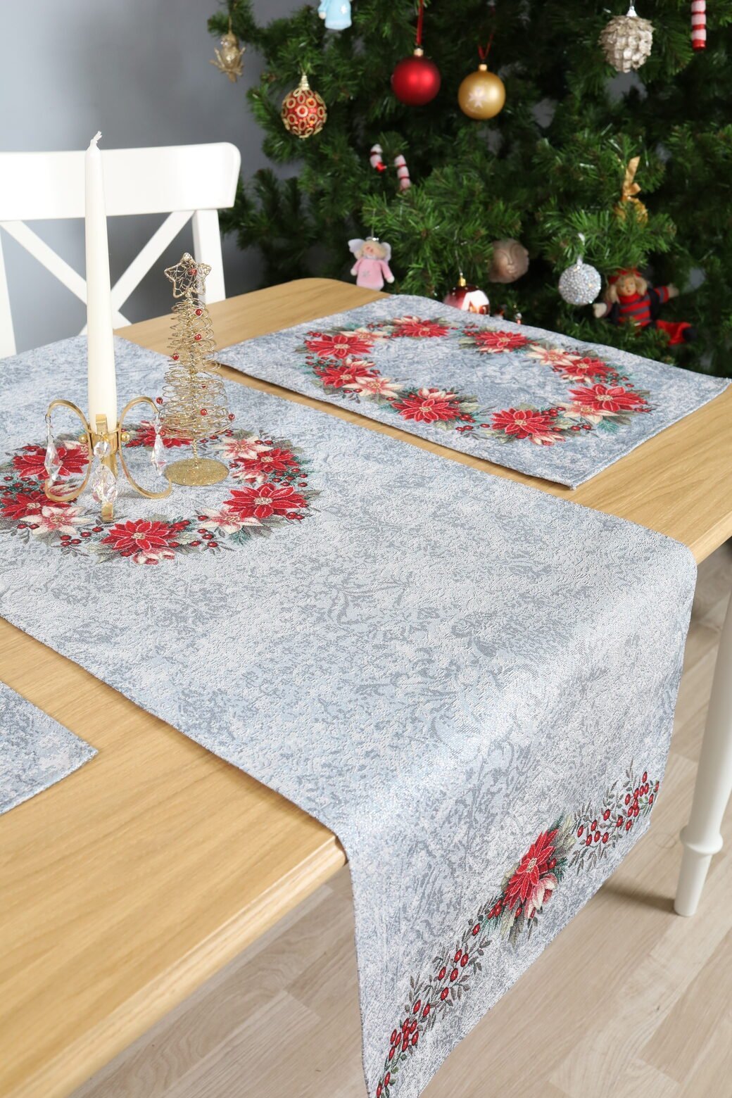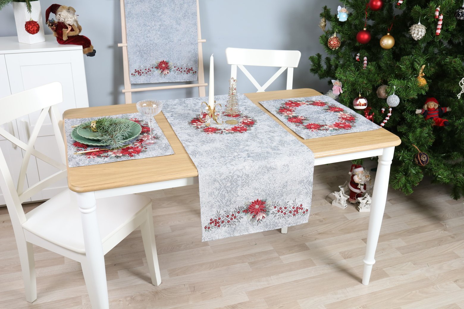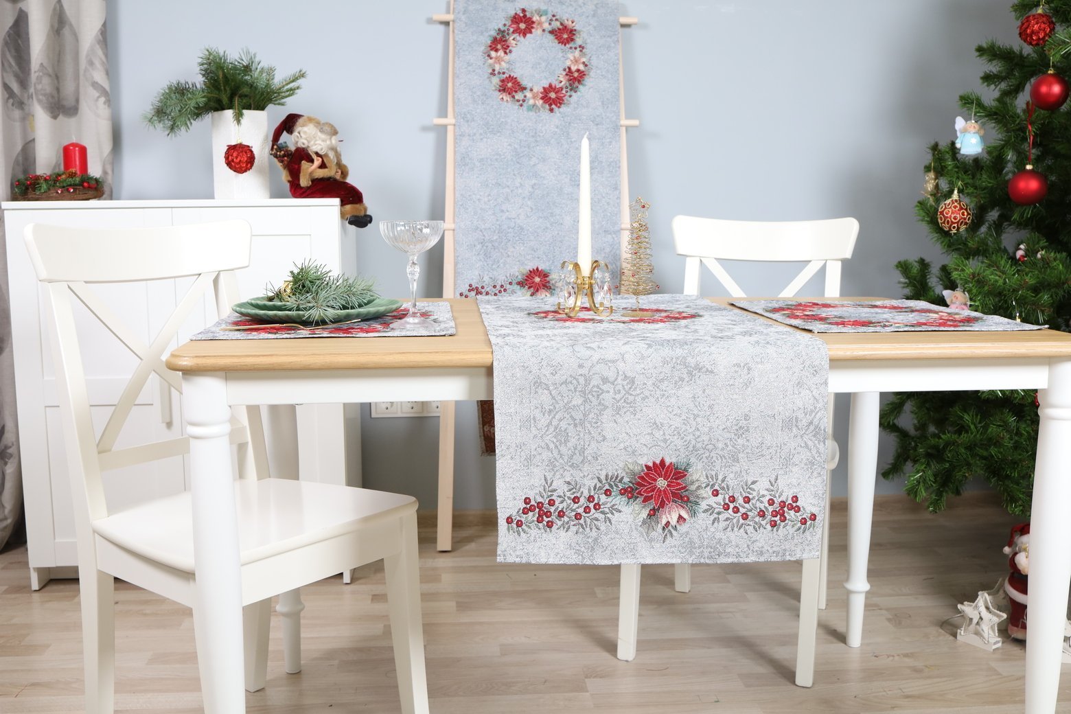 Bieżnik świąteczny Błękitny Wieniec z poinsecji