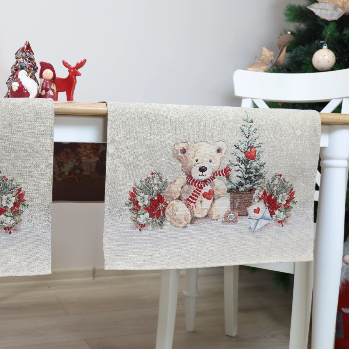 Pielęgnacja: bieżniki zalecamy czyścić chemicznie na sucho. W pralce automatycznej tkaninę można prać w temperaturze nie wyższej niż 30 °C, bez użycia wybielaczy i środków zawierających chlor. Tkaninę gobelinową należy suszyć naturalnie, ważne, aby jej nie przesuszyć; nie wolno suszyć w suszarce bębnowej. Zalecamy prasować w temperaturze nie wyższej niż 110 °C.