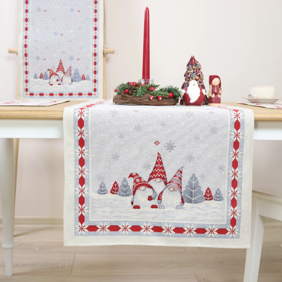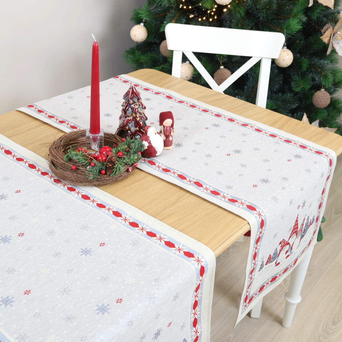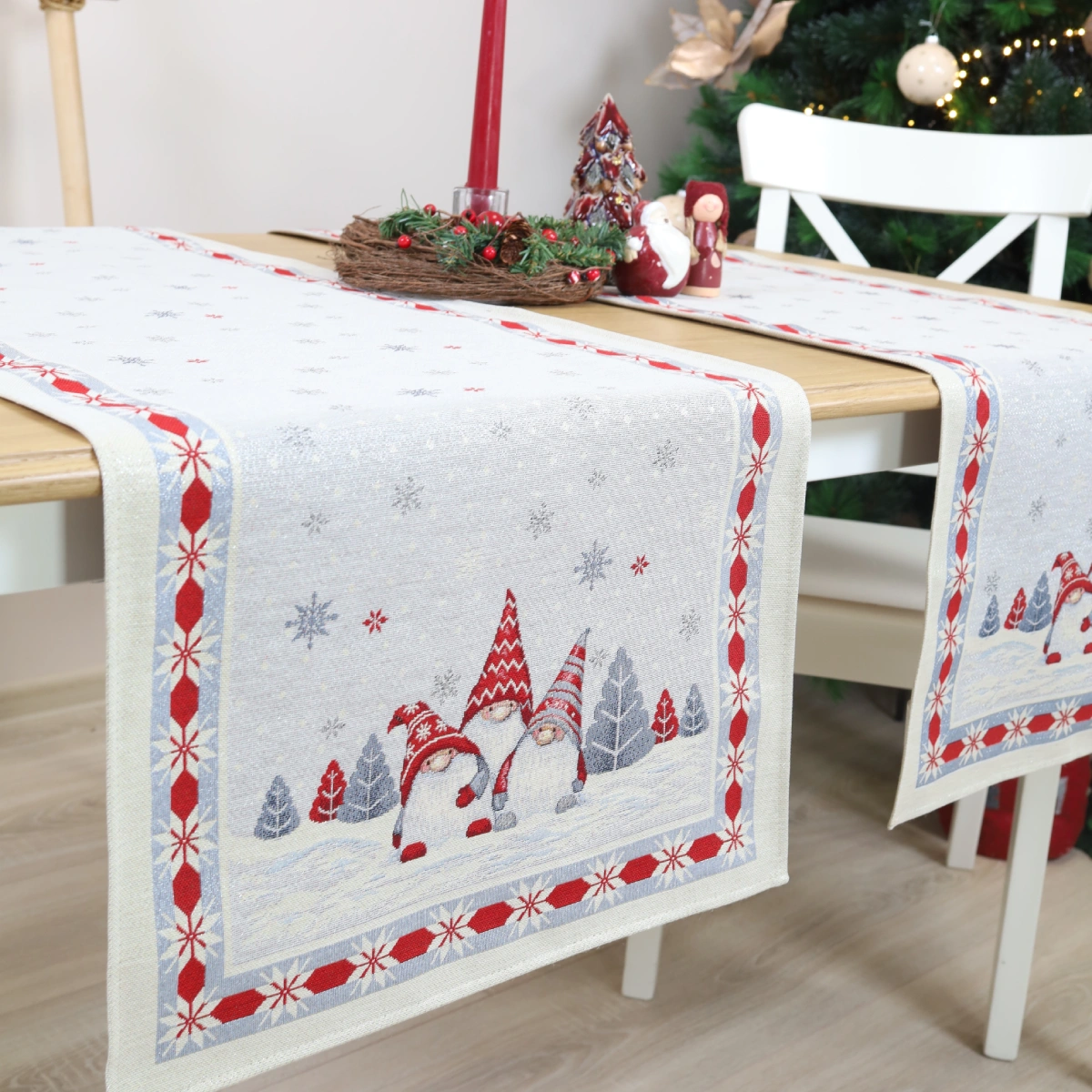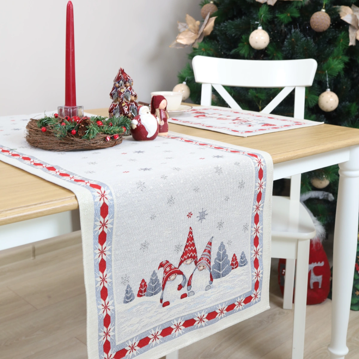 Bieżnik świąteczny Trio skrzatów (błyszczący)