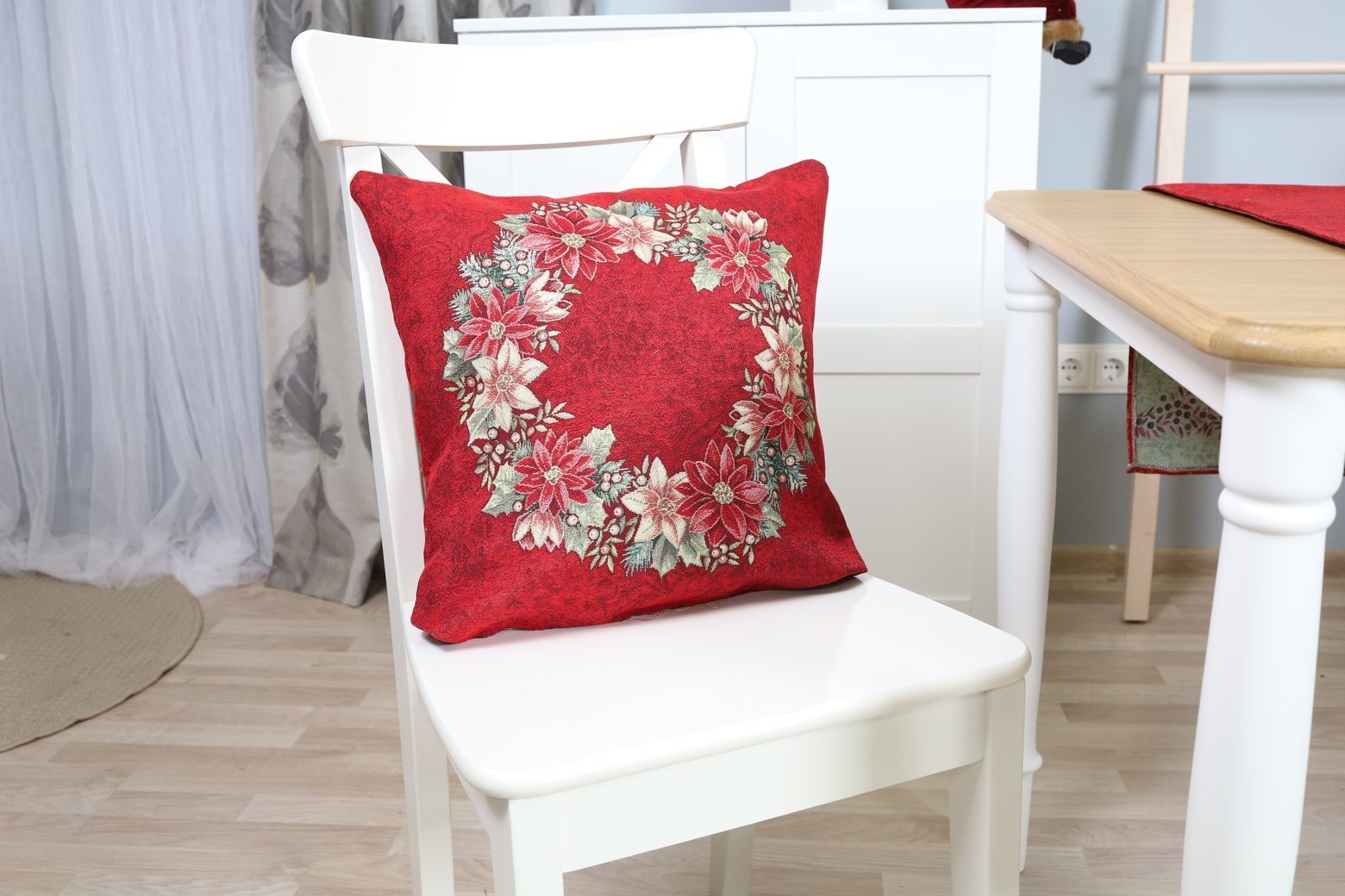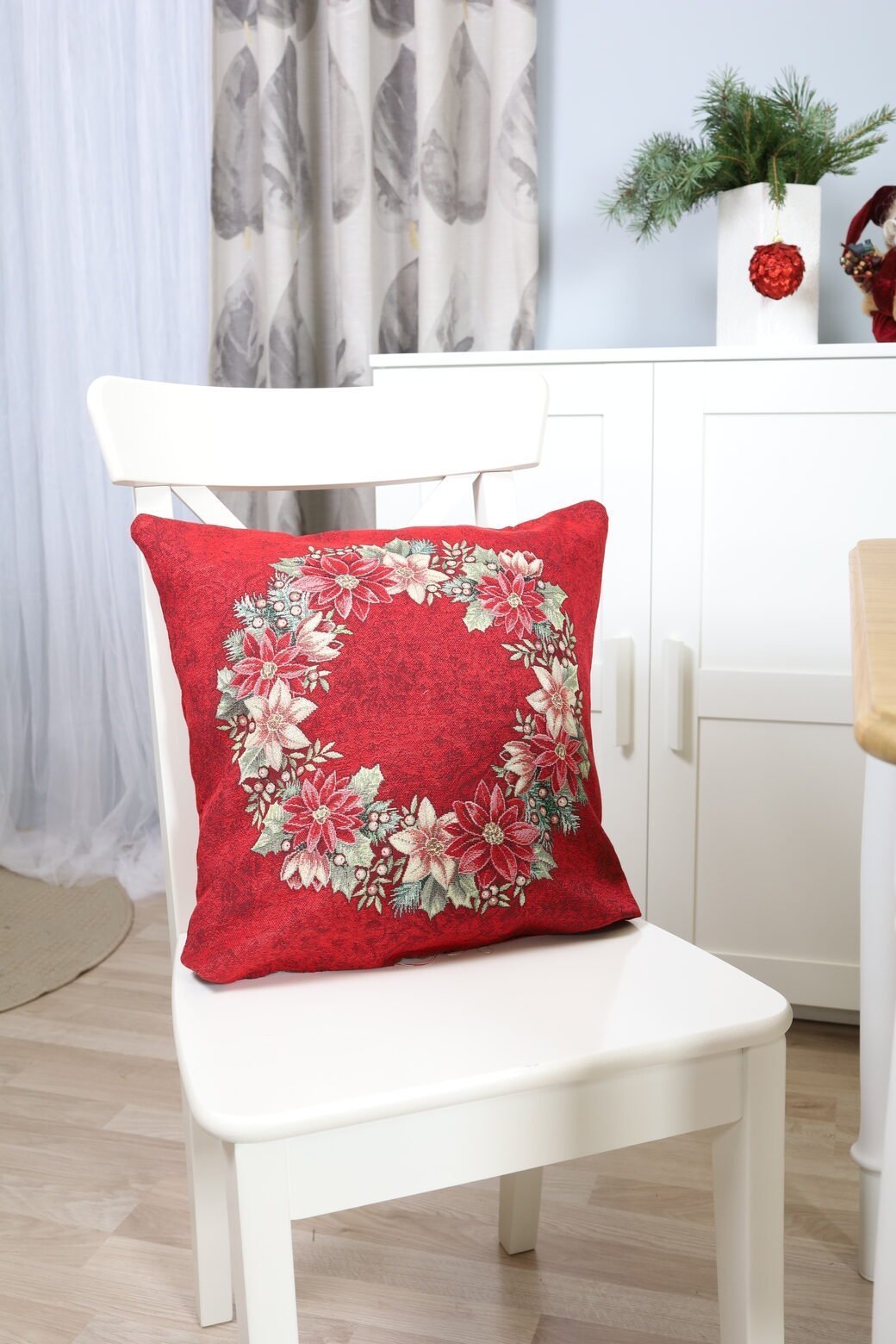 Dwustronna poszewka na poduszkę Wieniec z poinsecji