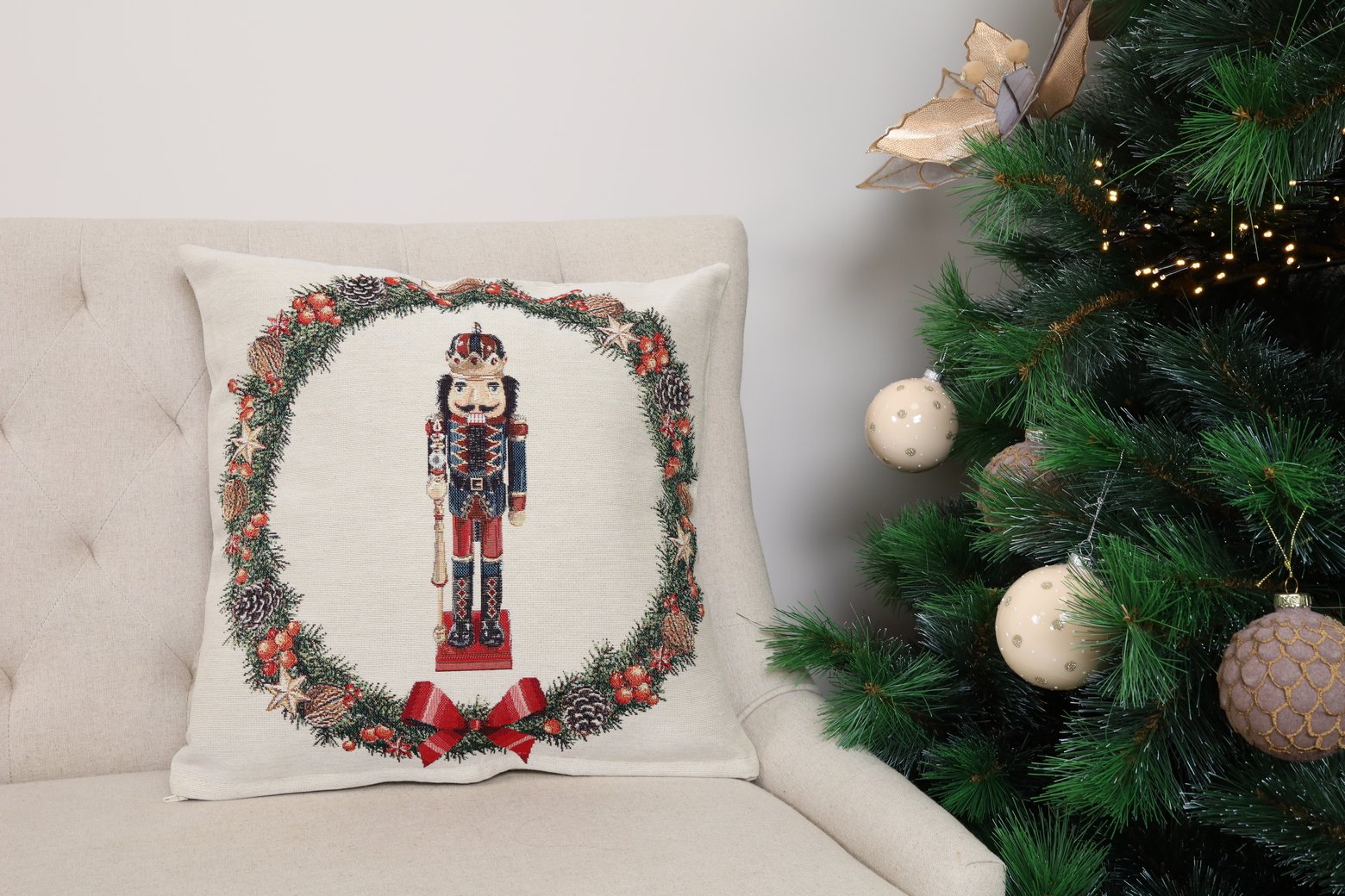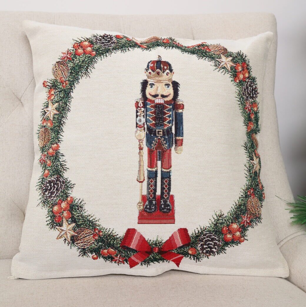 Dwustronna poszewka na poduszkę Dziadek do orzechów to świetny prezent dla każdego miłośnika Świąt Bożego Narodzenia.