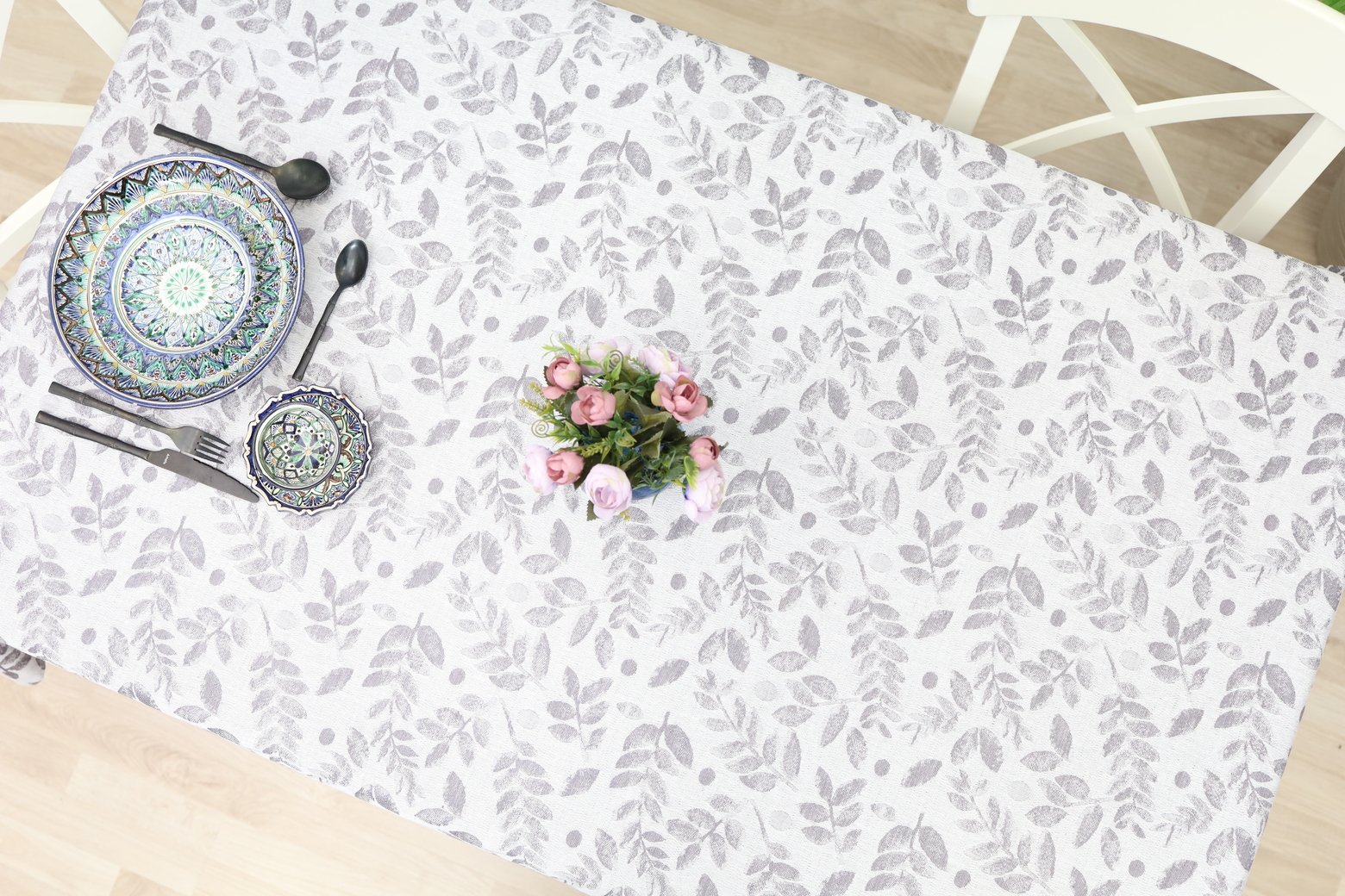 Lniany obrus Liście to wysokiej jakości obrus wykonany z naturalnej tkaniny lnianej. Wyróżnia się eleganckim wzorem liści, który dodaje wnętrzu świeżości i stylu. Naturalny len wzbogaca estetykę stołu, a zarazem gwarantuje trwałość i długowieczność.