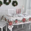 Wytworny, elegancki, z trwałej tkaniny gobelinowej obrus świąteczny, ozdobiony bożonarodzeniowymi motywami. To doskonały, subtelny i zapadający w pamięć prezent na Boże Narodzenie.