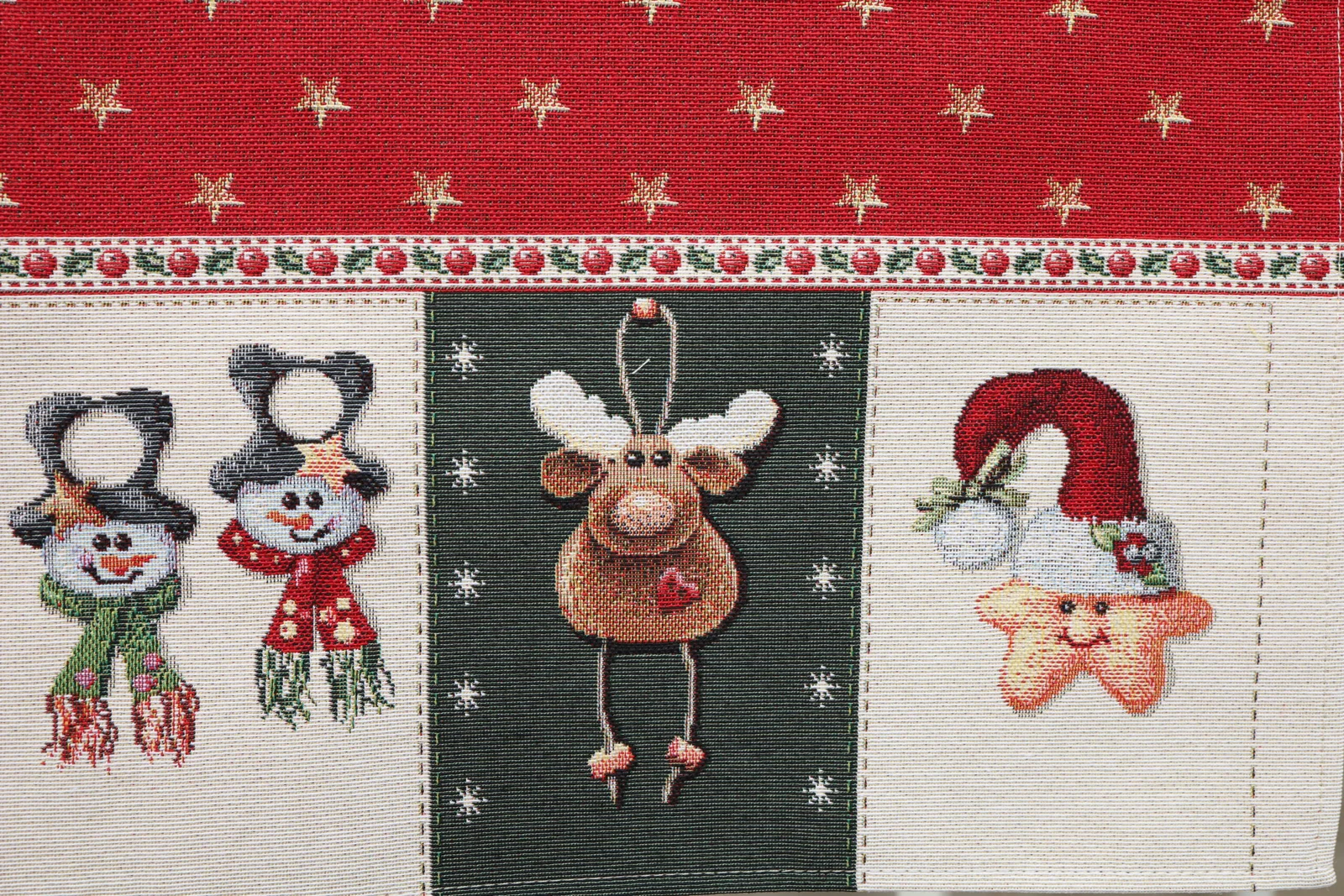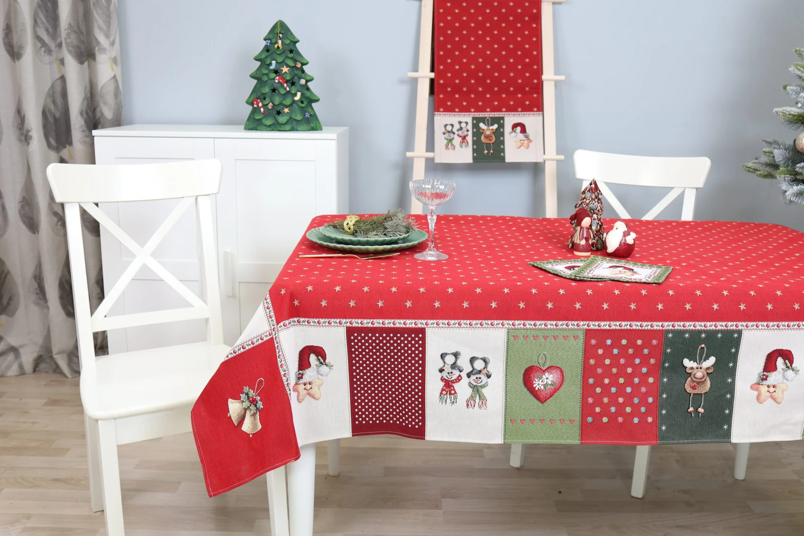 Wytworny, elegancki, z trwałej tkaniny gobelinowej obrus świąteczny, ozdobiony bożonarodzeniowymi motywami. To doskonały, subtelny i zapadający w pamięć prezent na Boże Narodzenie.