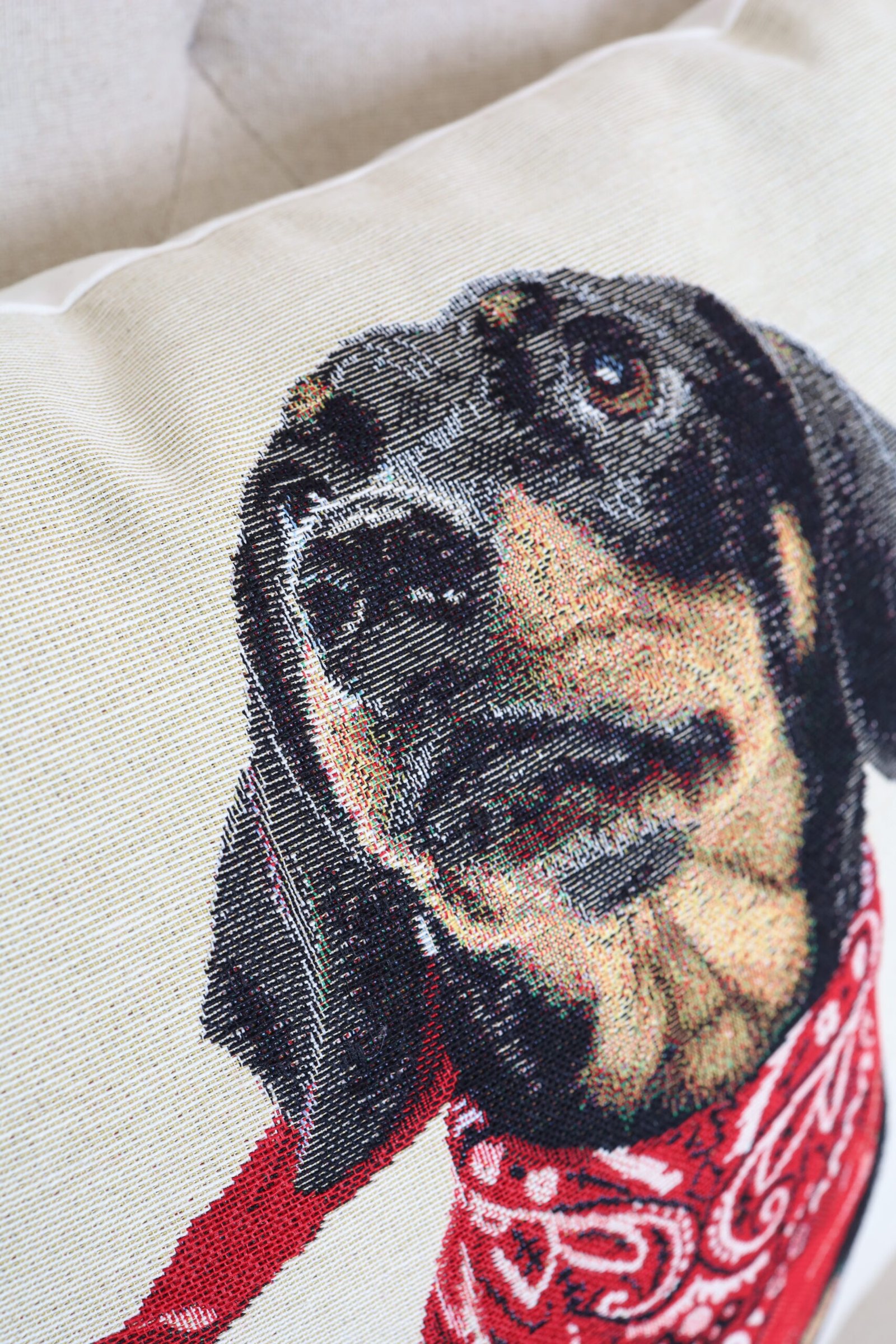 Poszewka na poduszkę Jamnik z chustką to doskonały prezent dla każdego miłośnika psów.