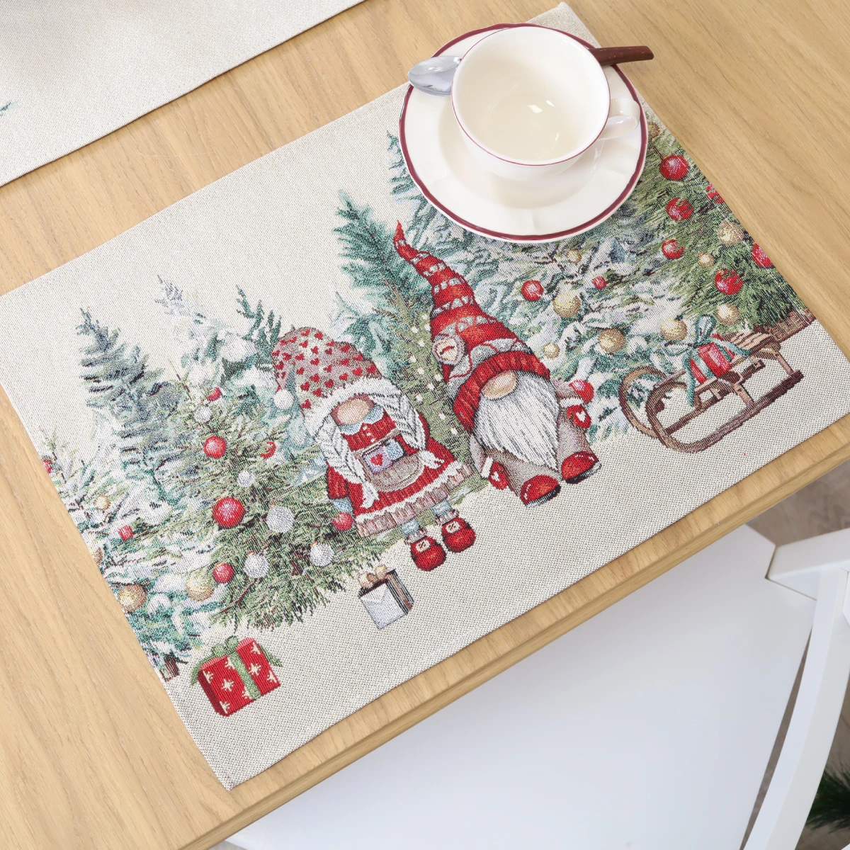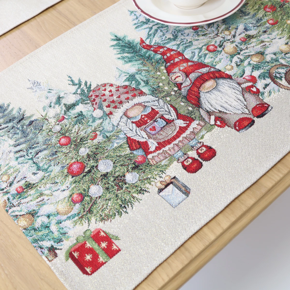 Wytworna, elegancka, z trwałej tkaniny gobelinowej serwetka, ozdobiona bożonarodzeniowymi motywami. To doskonały i zapadający w pamięć prezent na Boże Narodzenie.